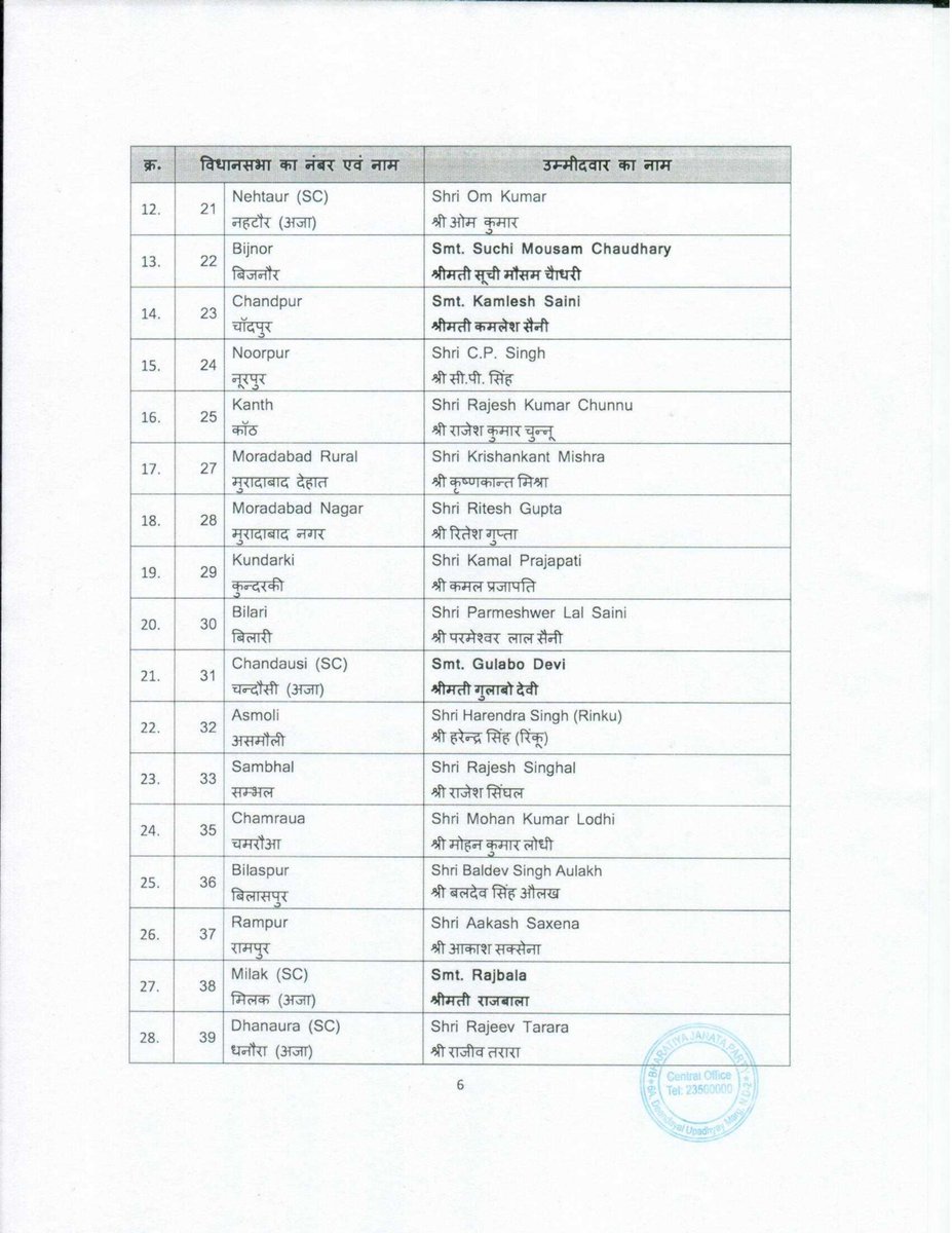 प्रधान ने कहा कि पहले चरण की 58 में से 57 सीटों पर उम्मीदवारों का एलान किया जा रहा है, इसके साथ ही दूसरे चरण की 55 में से 45 सीटों पर उम्मीदवारों के नाम का एलान किया जा रहा है। बची हुई सीटों पर ऐलान पार्लियामेंट्री बोर्ड में चर्चा के बाद किया जाएगा। कुछ सीटें गठबंधन के साथियों के लिए छोड़ी जाएंगी, उनका एलान भी बाद में किया जाएगा. कुल 107 सीटों पर बीजेपी ने उम्मीदवारों के नाम ऐलान किया है।